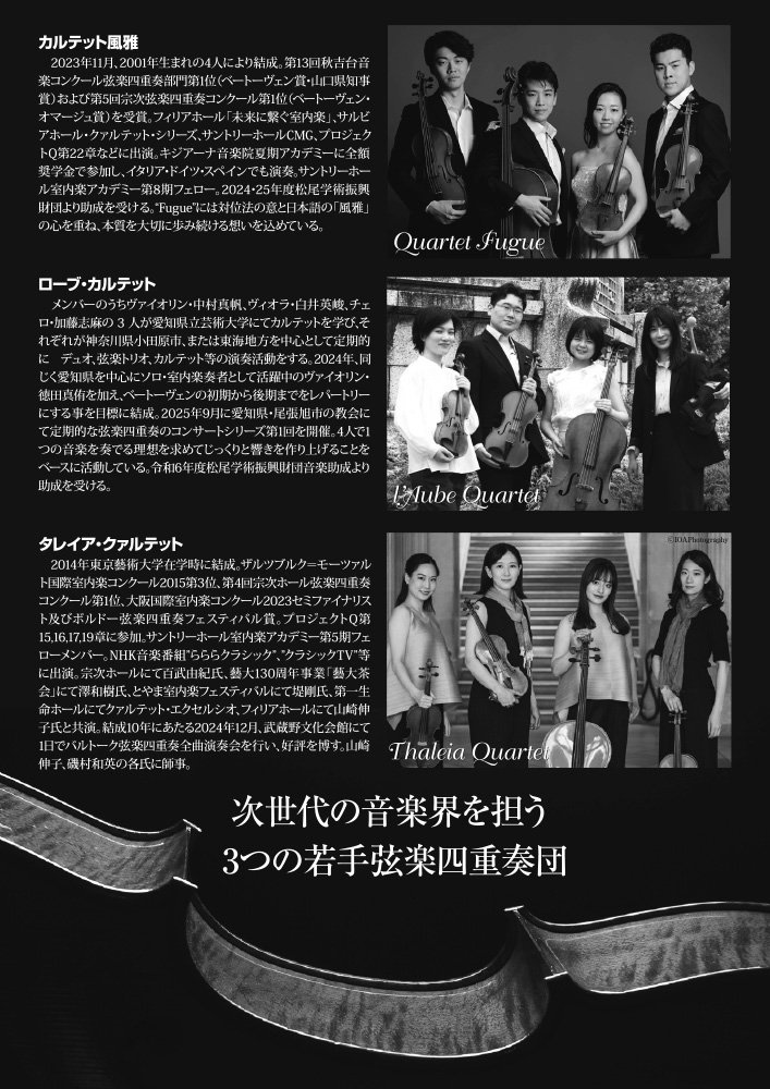 ●出演:クァルテット風雅、タレイア・クヮルテット、ローブ・カルテット